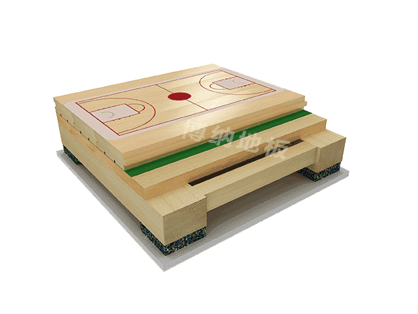 輔彈性龍骨層:和主龍骨協(xié)同作用,有效緩解沖擊壓力,使地板受力更加均勻穩(wěn)定,大大提升運(yùn)動(dòng)性能。